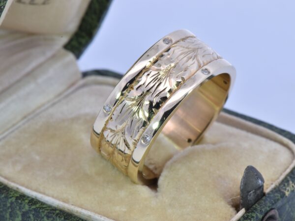 A ring built for true saints fans! We had so much fun building matching husband and wife wedding bands with a nice New Orleans touch! Go Saints!